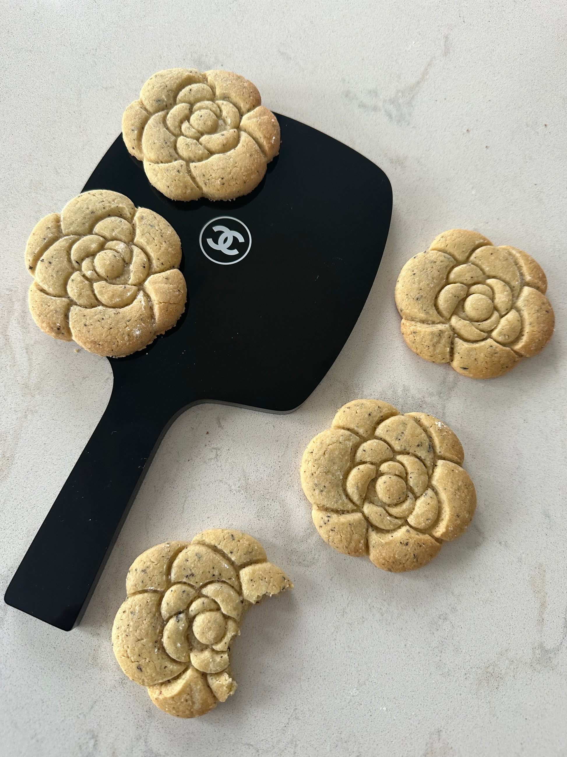 For flower lovers with a sweet tooth. Adorably chic camellia cookies in our finest flavors. Each gift box contains twenty-four cookies, individually wrapped in a beautiful pink window box with postcard. Each cookie is approximately 2.8" wide.